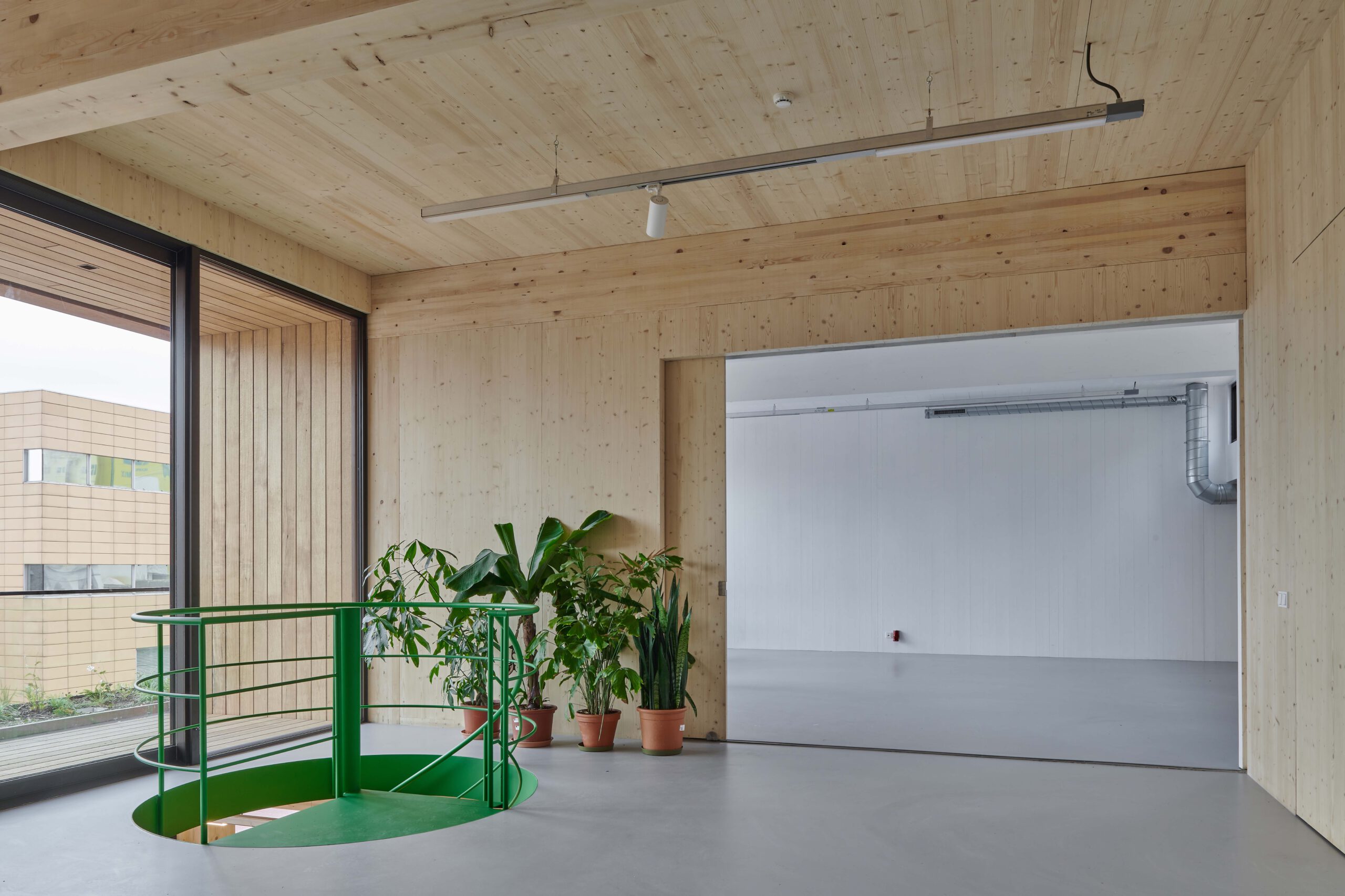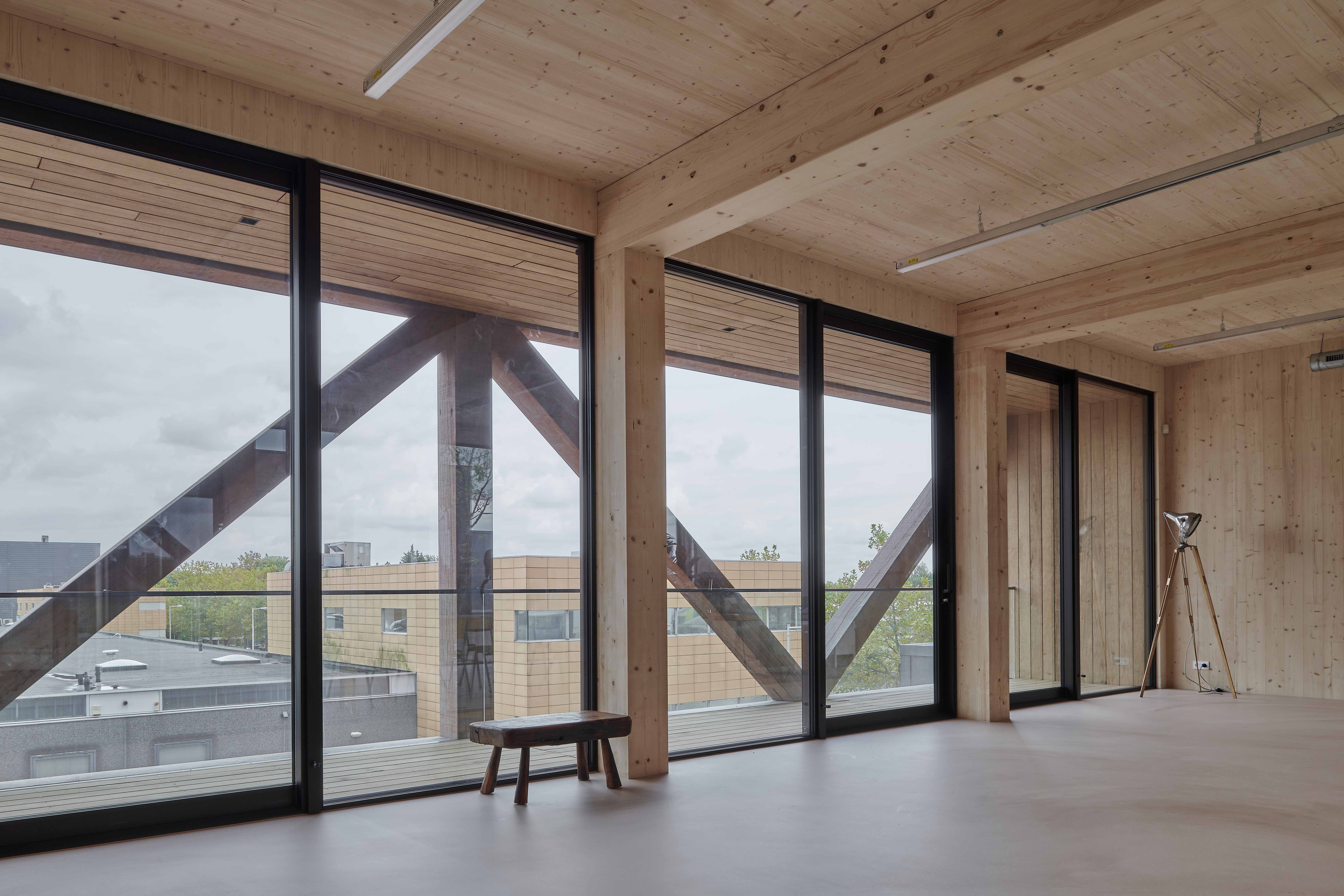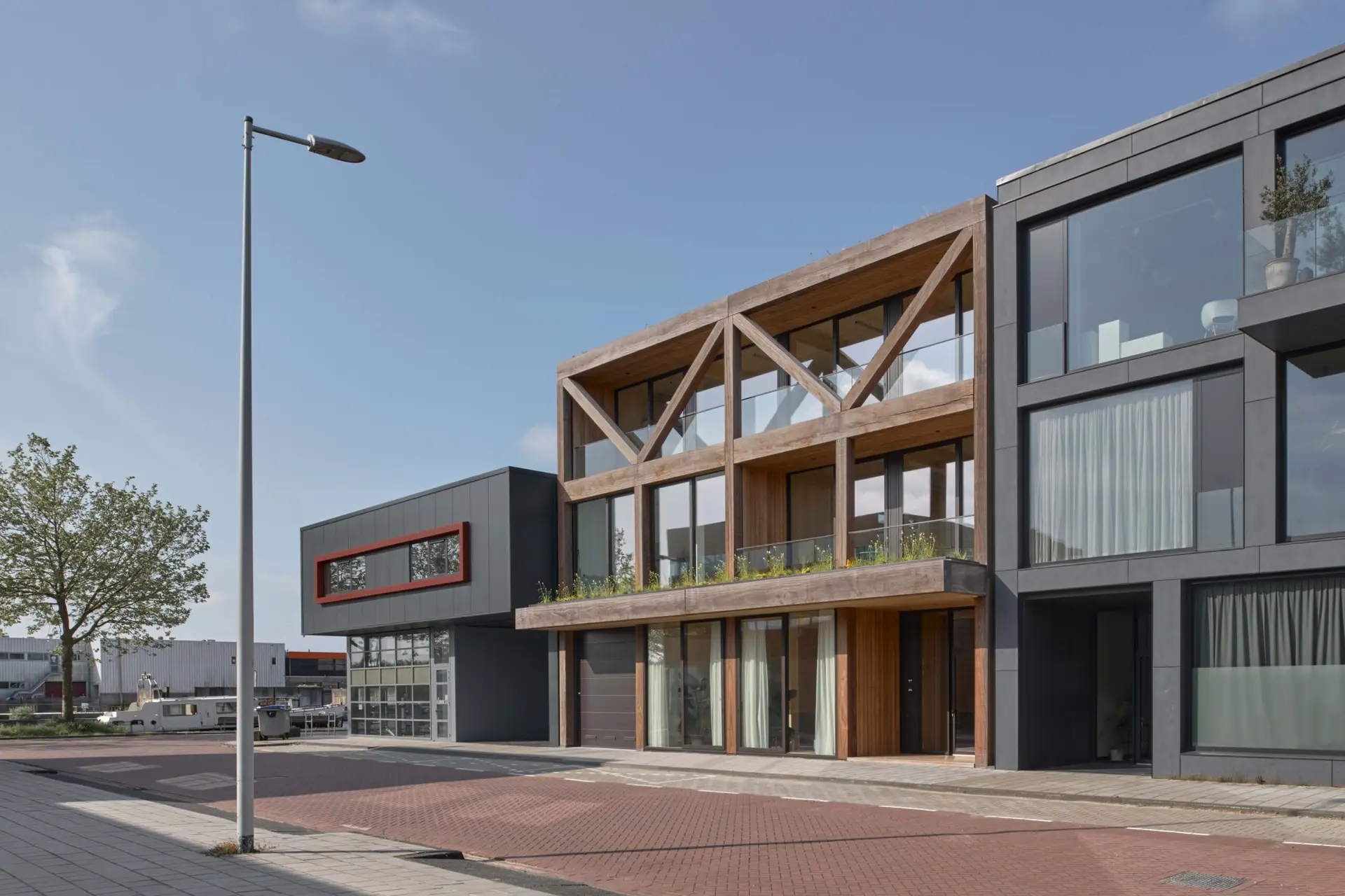 Aan de Pieter Braaijweg in Amstel Business Park realiseren wij sinds 2019 Studiogebouw A, een flexibel bedrijfsgebouw in massieve houtbouw. Dit robuuste, duurzame pand telt drie verdiepingen met twee fotostudio’s en vier creatieve werkruimtes voor Twentyten Photography & Film. Elke ruimte heeft daglicht en een eigen buitenruimte, ondanks de omliggende bebouwing. Het ontwerp beweegt naar licht, natuur en gebruiker. Hoewel houtbouw ongebruikelijk is voor bedrijfsgebouwen, maakt dit Studiogebouw A tot een verrassend lenig geheel.