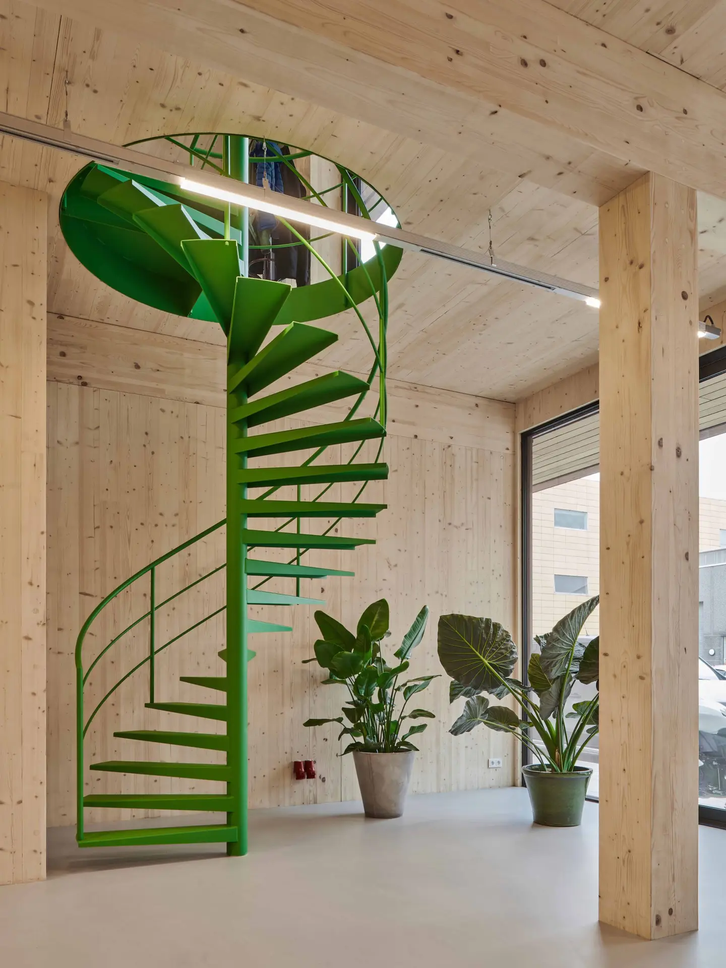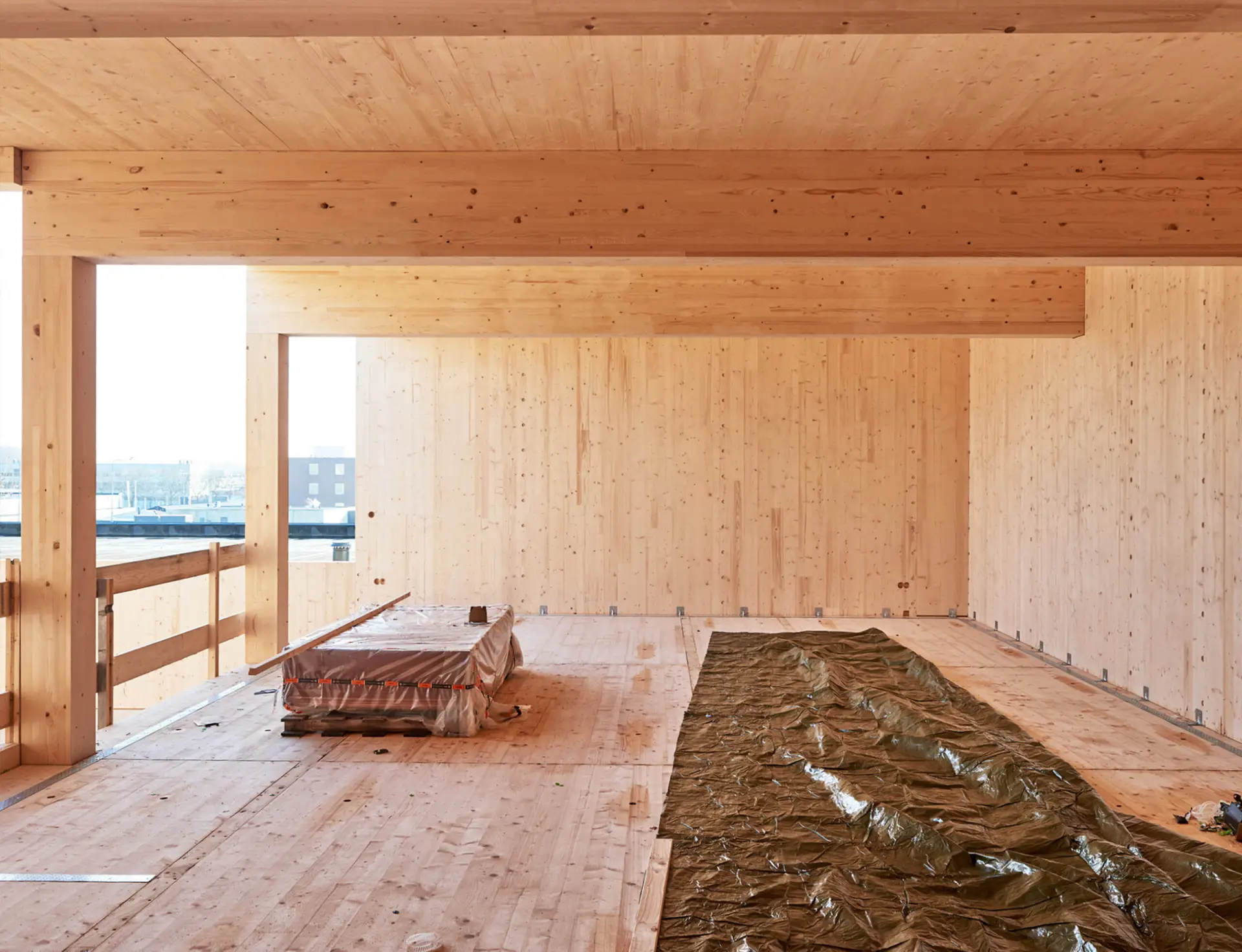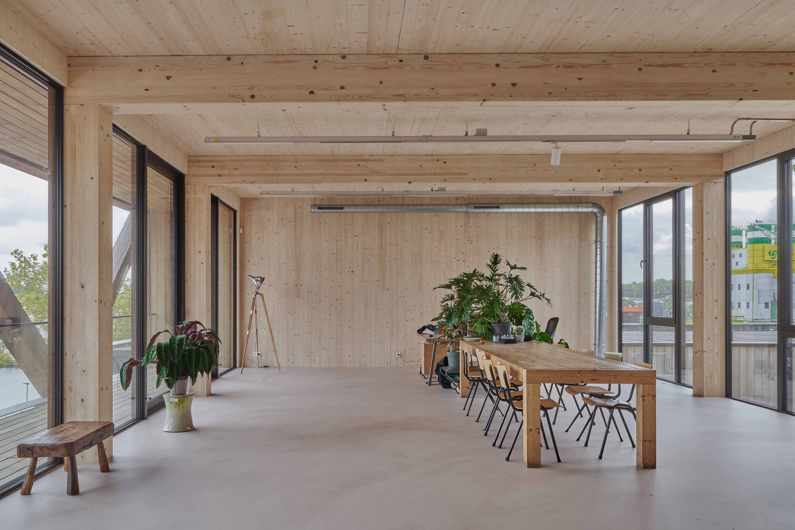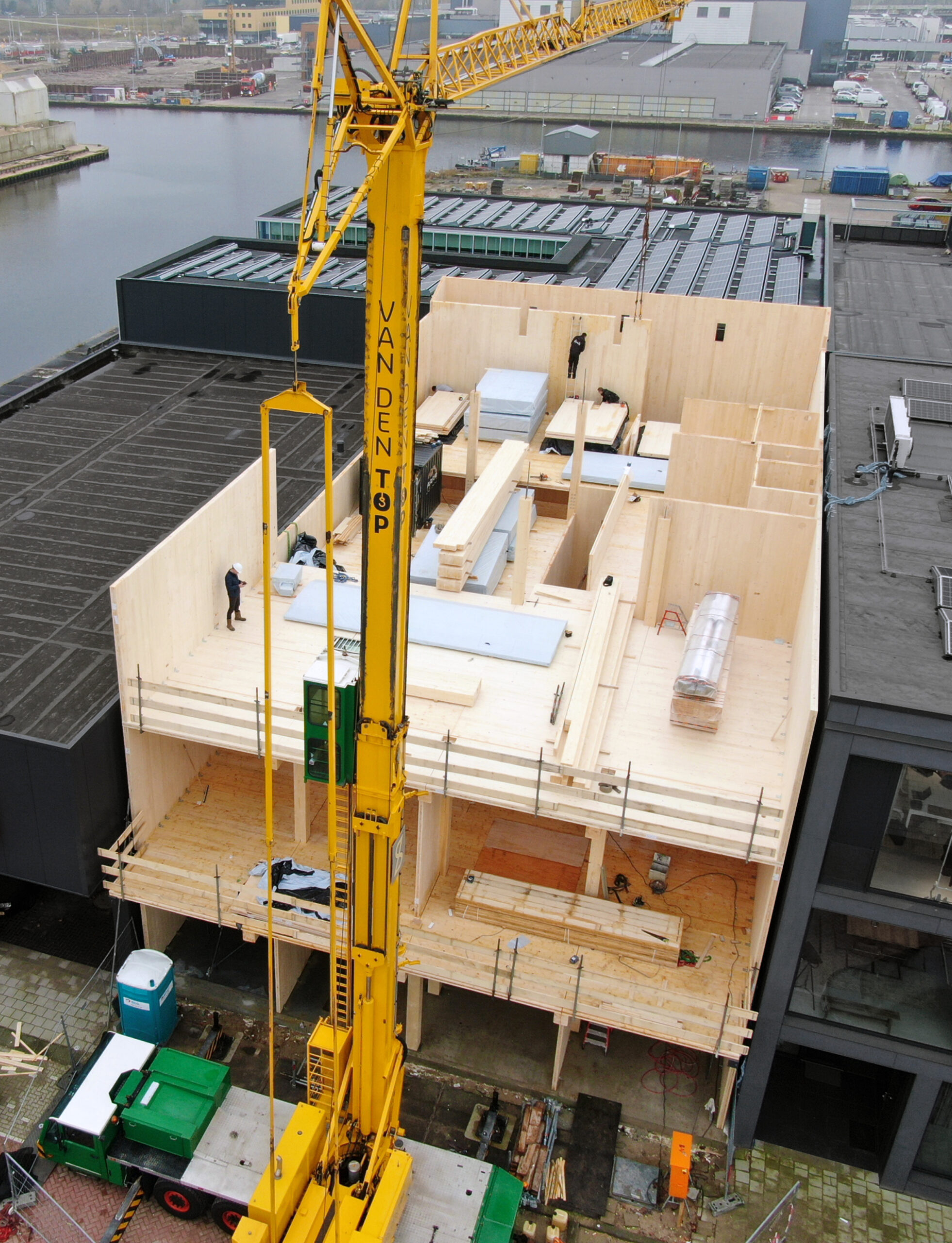 Aan de Pieter Braaijweg in Amstel Business Park realiseren wij sinds 2019 Studiogebouw A, een flexibel bedrijfsgebouw in massieve houtbouw. Dit robuuste, duurzame pand telt drie verdiepingen met twee fotostudio’s en vier creatieve werkruimtes voor Twentyten Photography & Film. Elke ruimte heeft daglicht en een eigen buitenruimte, ondanks de omliggende bebouwing. Het ontwerp beweegt naar licht, natuur en gebruiker. Hoewel houtbouw ongebruikelijk is voor bedrijfsgebouwen, maakt dit Studiogebouw A tot een verrassend lenig geheel.