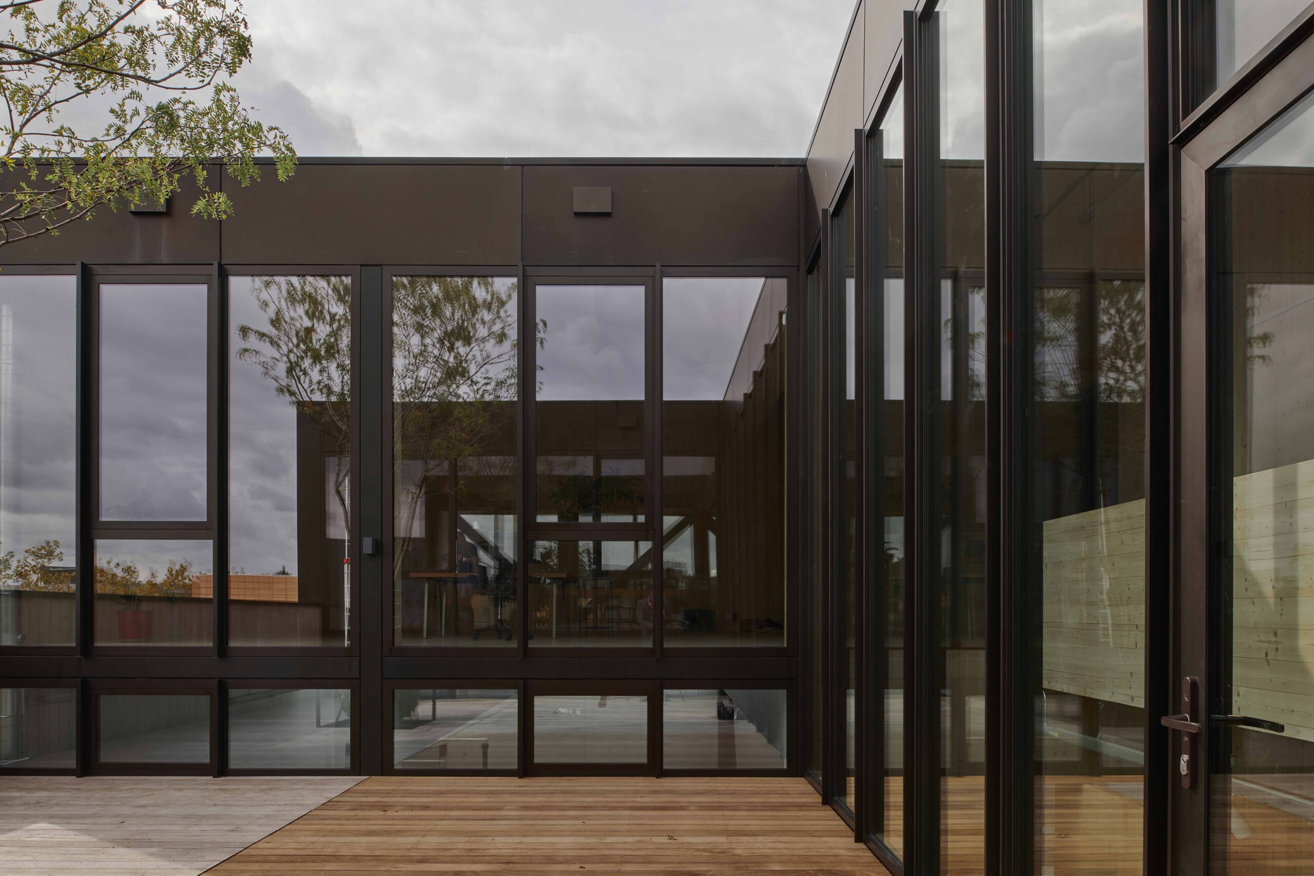 Deze bosrijke locatie heeft een levendig landschap met een grillige geschiedenis. Het zelfbouwkavel van woonhuis AJ ligt omringd door monumenten en in het ritme van een dorpslint. Het ontwerp speelt in op de vier verschillende zijden van het kavel, geïnspireerd door het coulisselandschap. De oriëntatie van de volumes reageert op de kavelgrenzen en de zon voor optimale zonne-energie. Het woonhuis is volledig zelfvoorzienend en kan all-electric draaien, waarbij het alle benodigde energie zelf opwekt.
